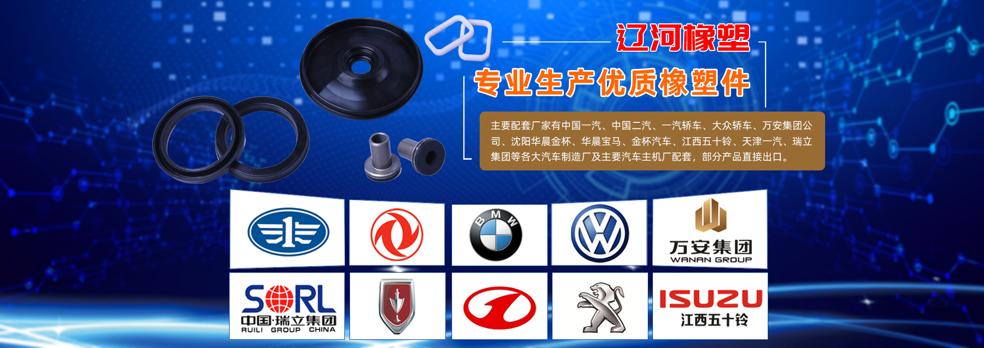 遼河集團(tuán)主要生產(chǎn)各類汽車三角窗密封條、O形圈、油封、皮膜、皮碗、減震系列等各類橡塑密封件和汽車用橡膠制品,公司銷售網(wǎng)點(diǎn)遍布全國(guó)各地,目前已經(jīng)為全國(guó)各大汽車制造廠及主要汽車主機(jī)廠配套各種橡膠制品。